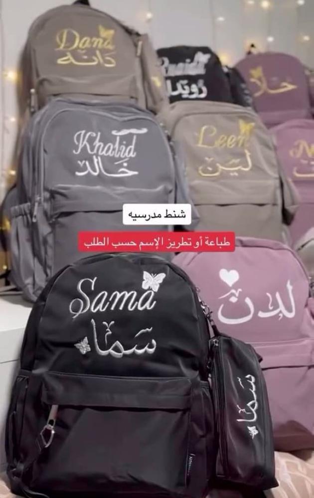 • تطريز اسم الولد او البنت ع الشنطه حسب الطلب