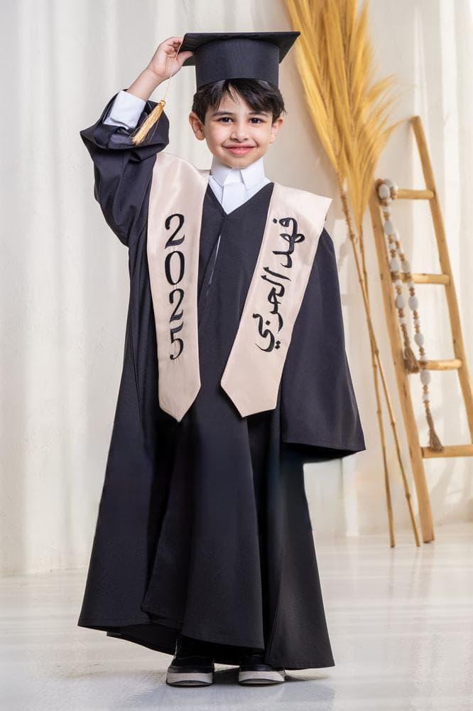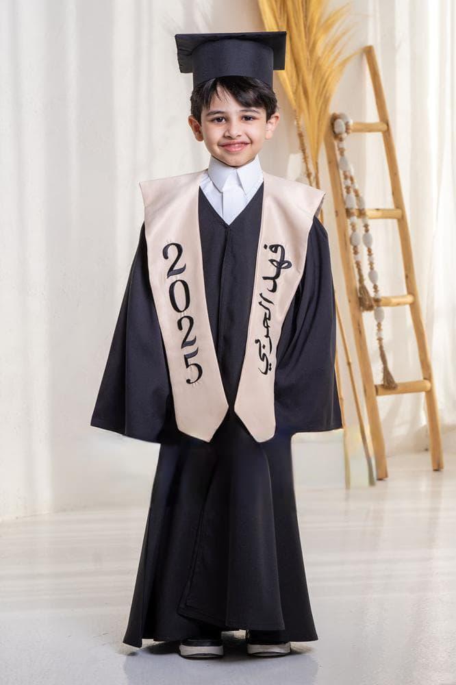 عباية تخرج ابتدائي ولادي لون أسود مع وشاح لون بيج-متجر فرح